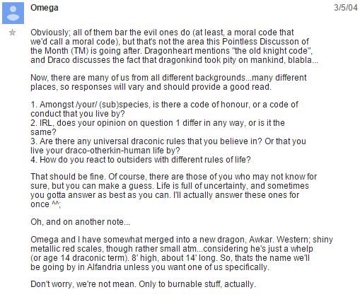 Draconic moral codes? https://groups.google.com/forum/#!search/otherkin/alt.fan.dragons/PFVGSTSa4-I/iz5KQ3_Fg9IJ