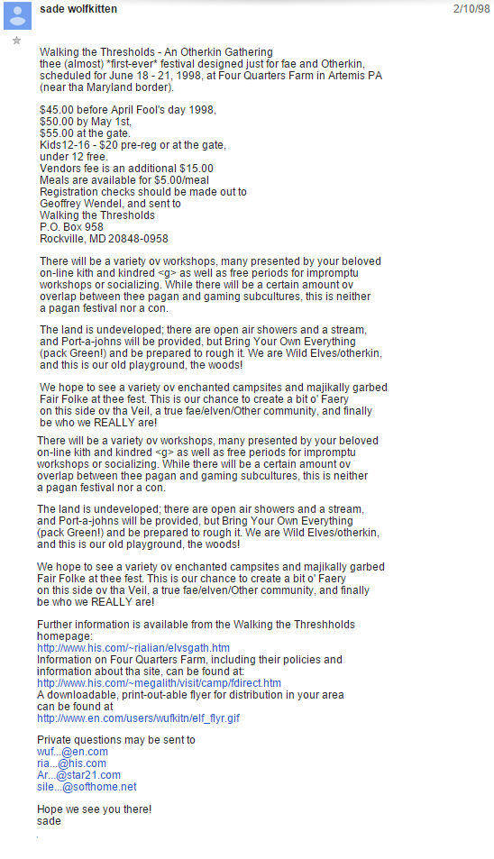 Kingather invitation 1998 https://groups.google.com/forum/#!search/otherkin/rec.arts.comics.elfquest/rjdAJFWZ3XQ/e56Yr-Kr8sQJ Posted onJune 19, 2015 548 × 953 Kingather invitation 1998 https://groups.google.com/forum/#!search/otherkin/rec.arts.comics.elfquest/rjdAJFWZ3XQ/e56Yr-Kr8sQJ